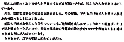 Pada saat ini Perkumpulan kerja sama International Pemerintah daerah Chuzu propinsi Shiga bersama semua anggota mengadakan pertemuan dan memutuskan untuk rencana kunjungan saudara-saudara dari bali ke Chuzu sebisa-bisa akan kami upayakan untuk menerimanya.